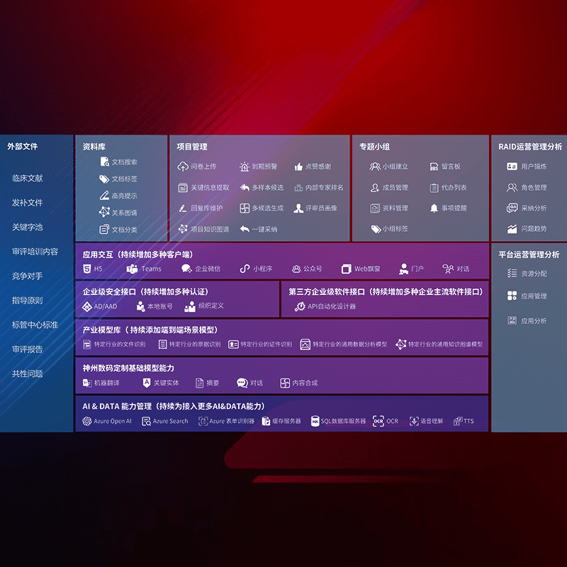 医疗器械产品上市前,,,要熟悉严格与繁复评审标准,,,,整理分析监管机构指导文件中的海量信息。。。企业急需一个智能化解决方案,,,,提升知识管理效率,,,提高评审通过率,,以提升其市场竞争力。。。